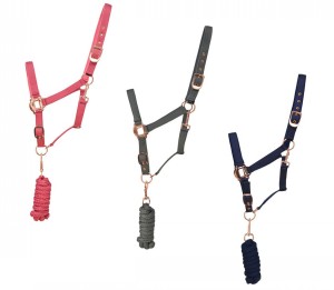 Be on trend with this fully adjustable stylish yet comfortable Head Collar with elegant Rose Gold fixtures and smooth fleece lining around the Noseband and Headpiece. Complete with matching lead rope.