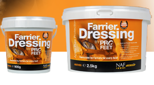 PROFEET Farrier Dressing Is an easy to apply dressing, whatever the weather. Great for use on yards, in a handy bucket container to transport from area to area where convenient. Available in a larger size to cater for yards. Ideal to apply daily, to complete the tacking up process, before turnout, during stabled periods or whenever deemed appropriate.